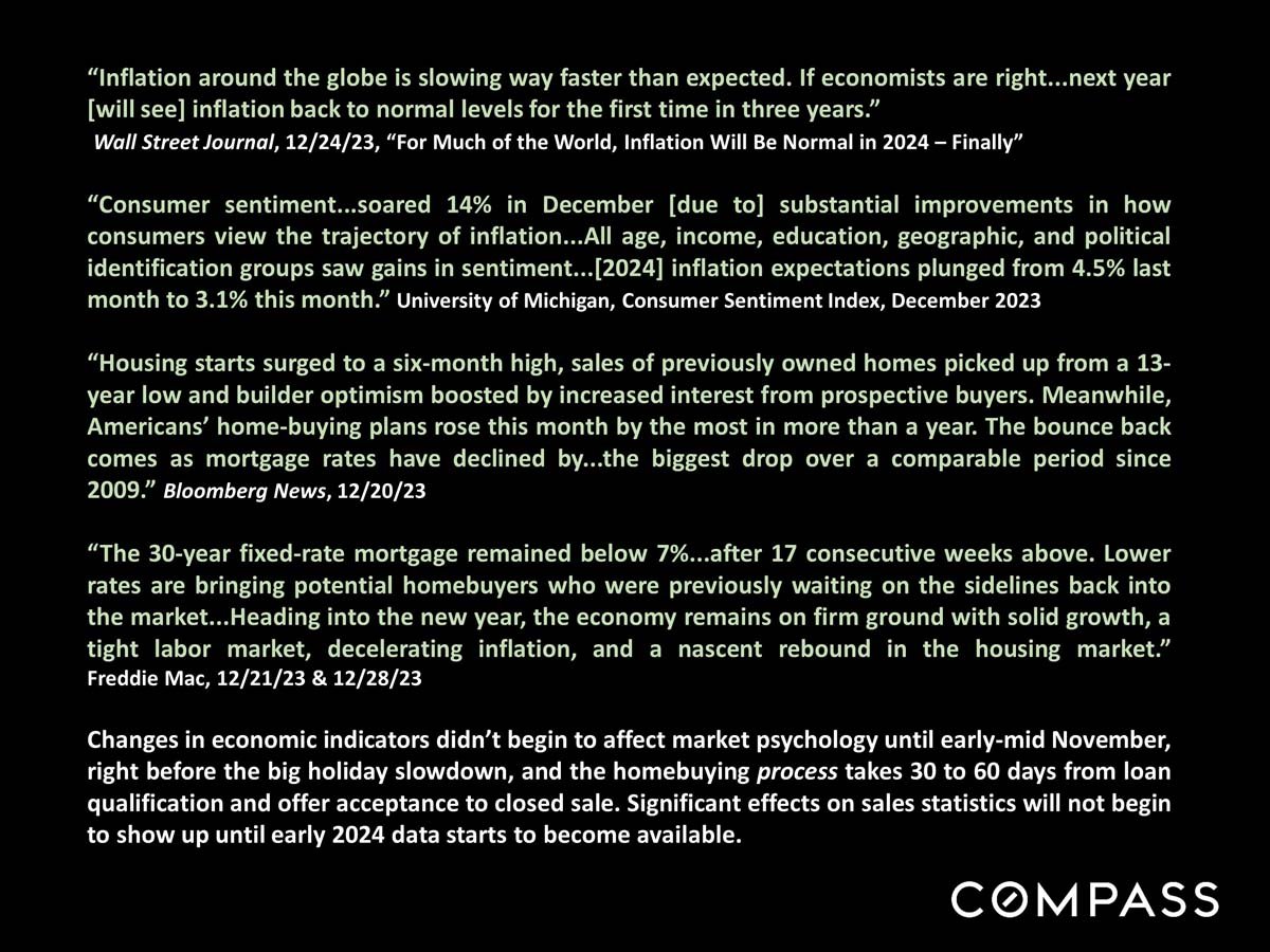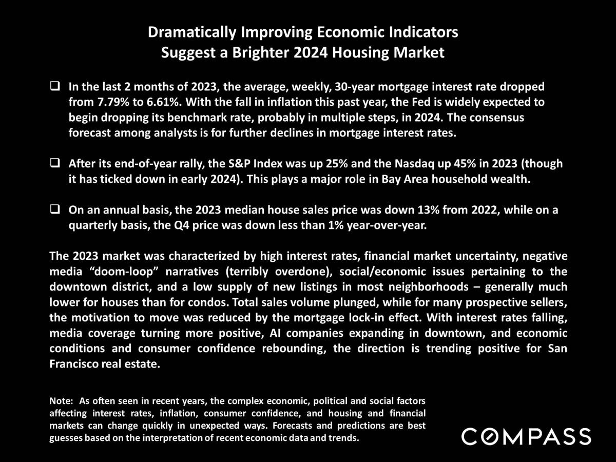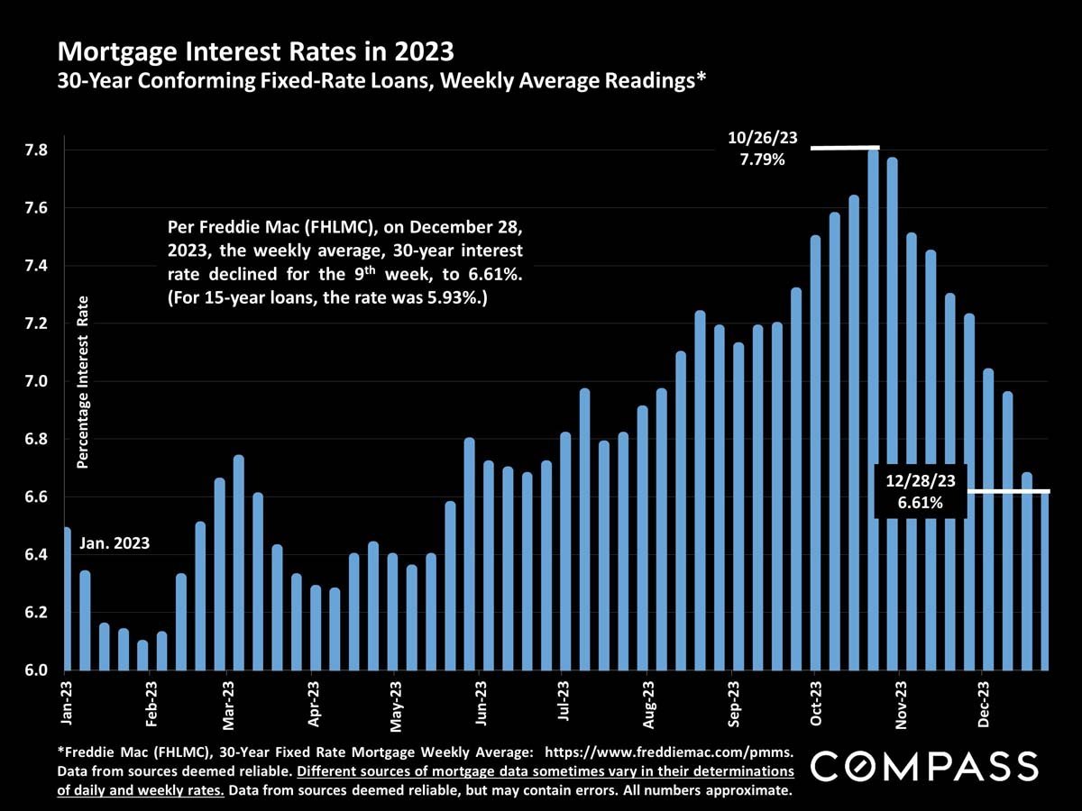 Dramatically Improving Economic Indicators Suggest a Brighter 2024 Housing Market. In the last 2 months of 2023, the average weekly 30-year mortgage interest rate dropped from 7.79% to 6.61%.