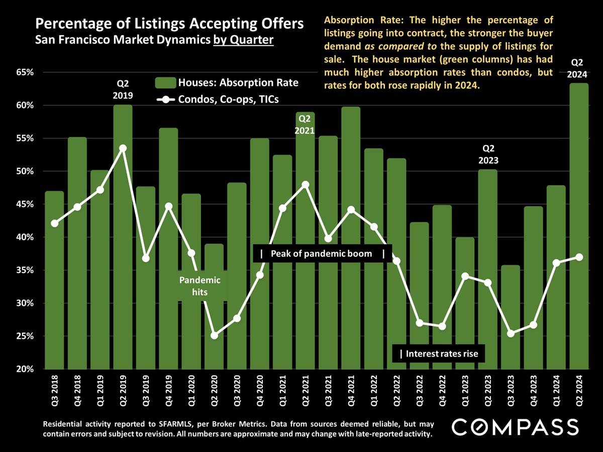 The median house sales price in Q2 2024 rose 6% from Q2 2023, while the median condo sales price declined by 2.5%.