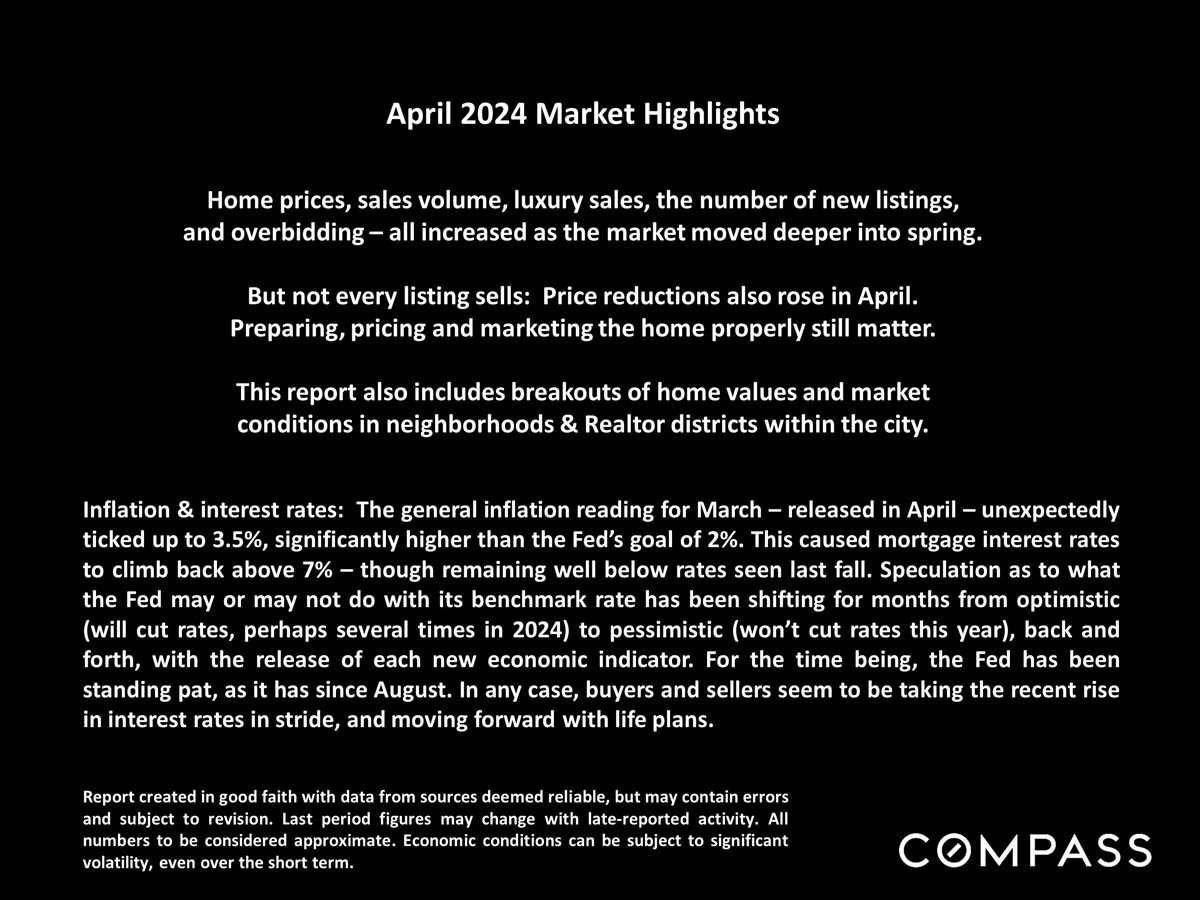 Home prices, sales volume, luxury sales, the number of new listings, and overbidding all increased as the market moved deeper into spring. But not every listing sells: Price reductions also rose in April. Preparing, pricing, and marketing the home properly still matter.